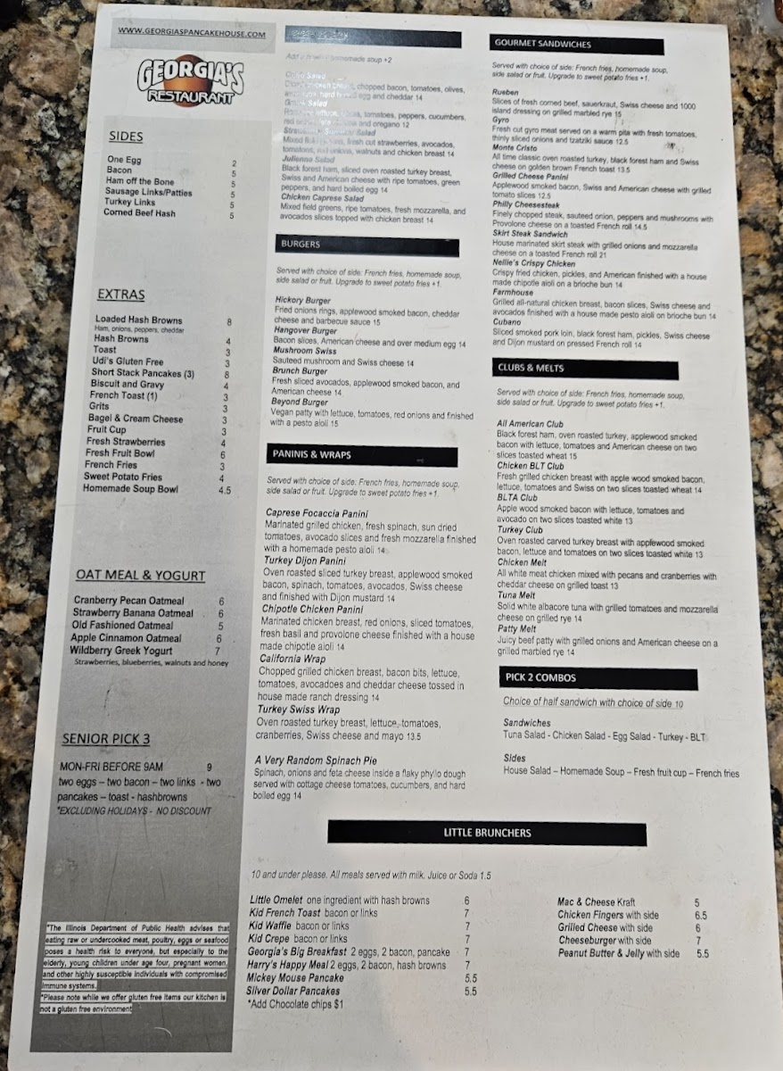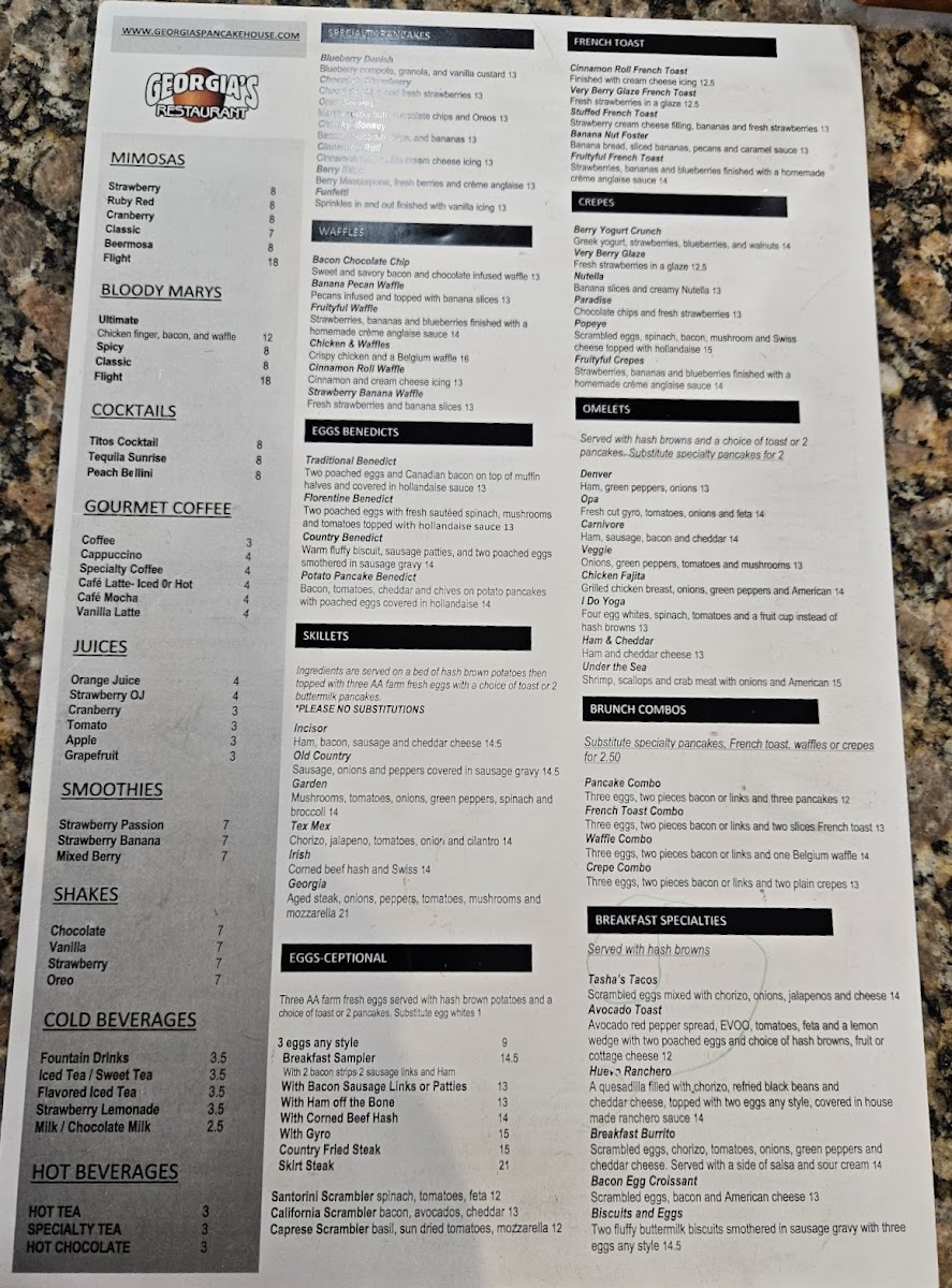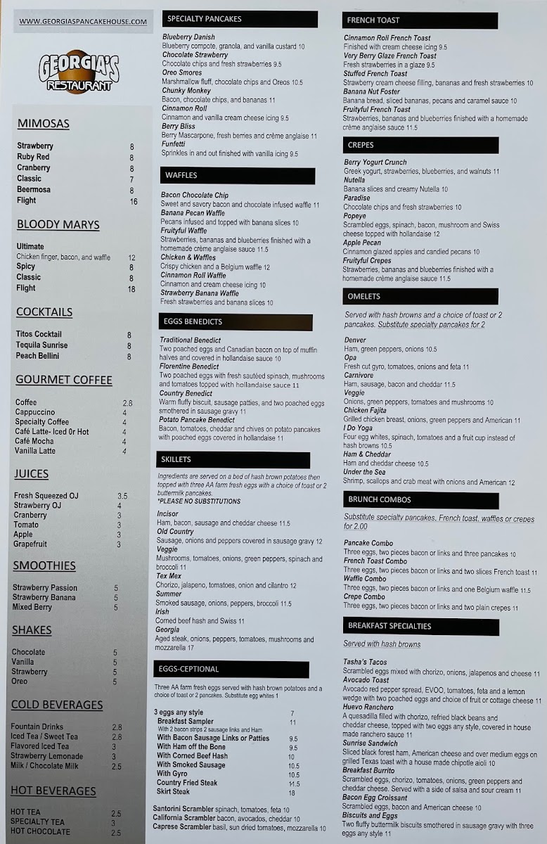 Welcome to Georgia’s Restaurant & Pancake House, a hidden gem located at 1470 S Randall Rd, Algonquin, IL. The menu here embraces the art of breakfast, offering a delightful array of skillets and hearty burgers that cater to every palate.